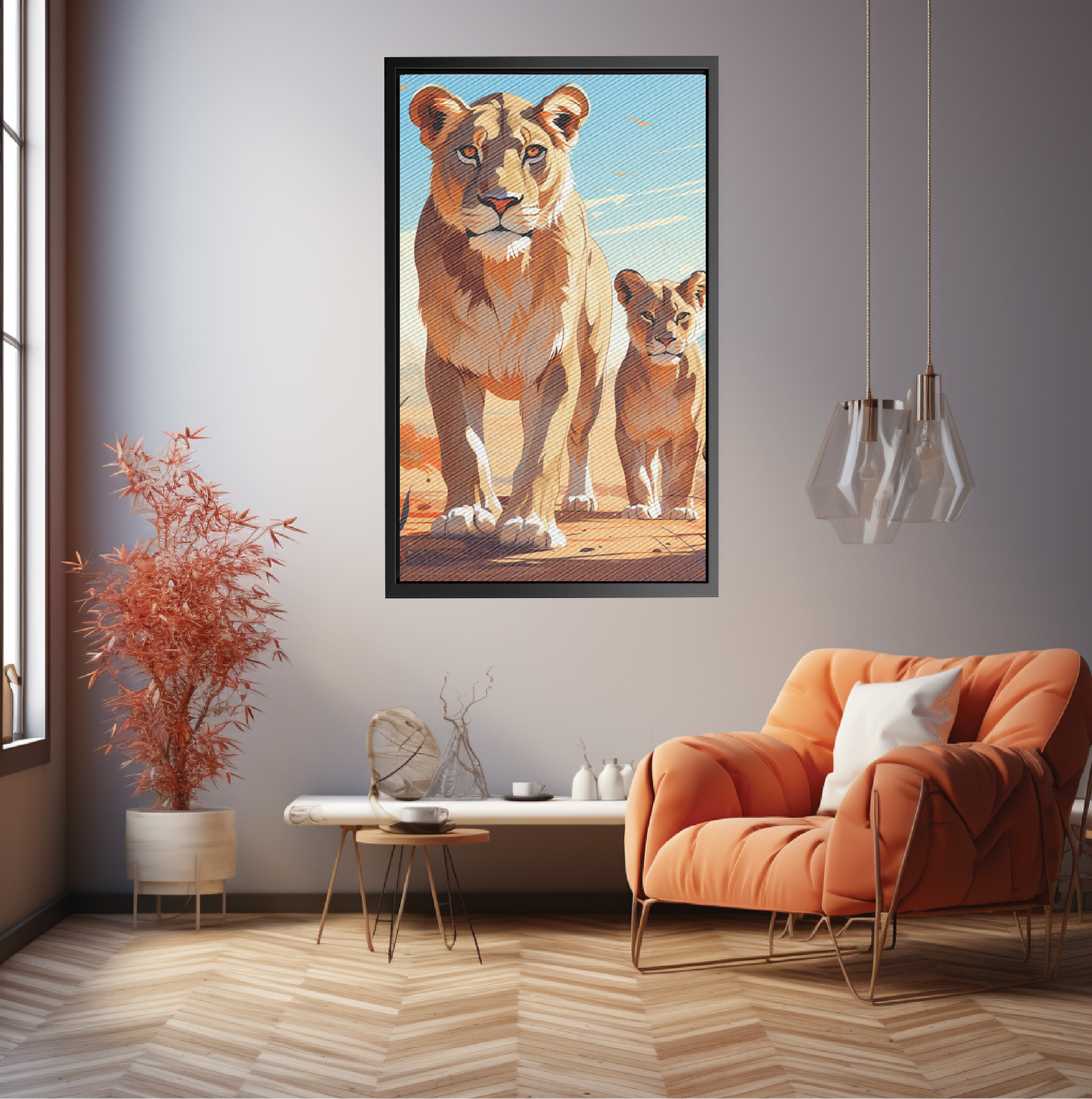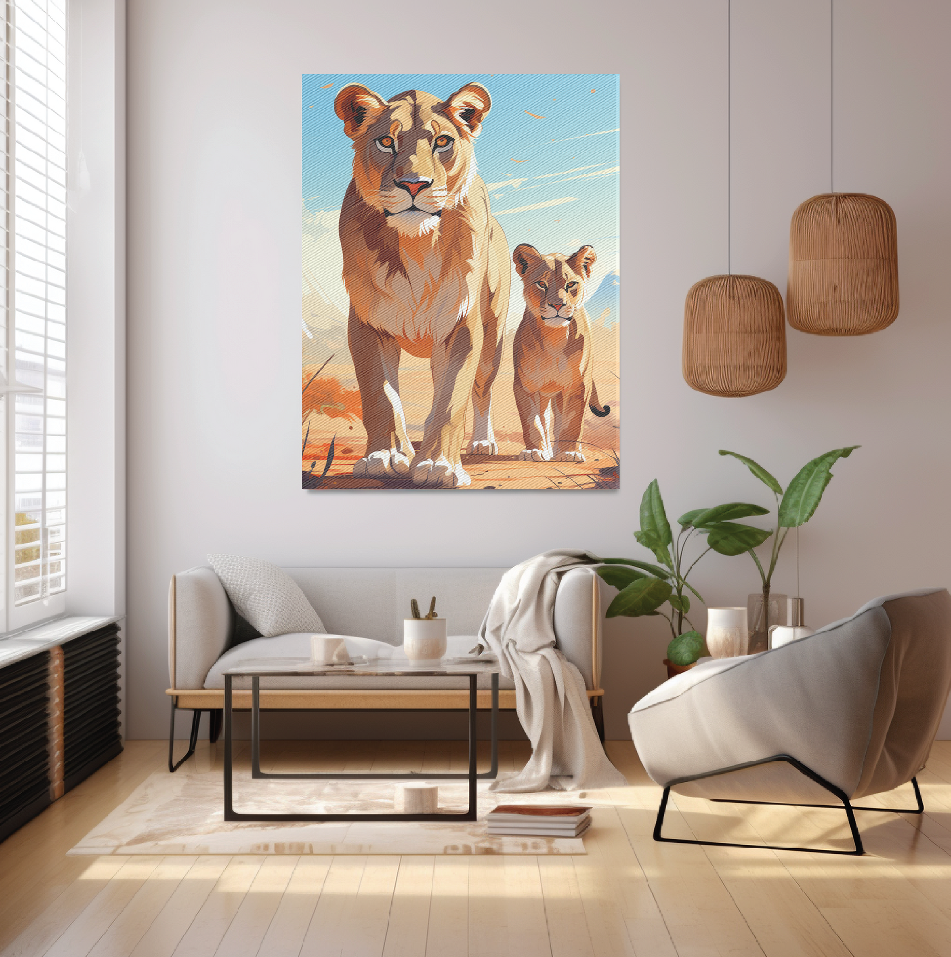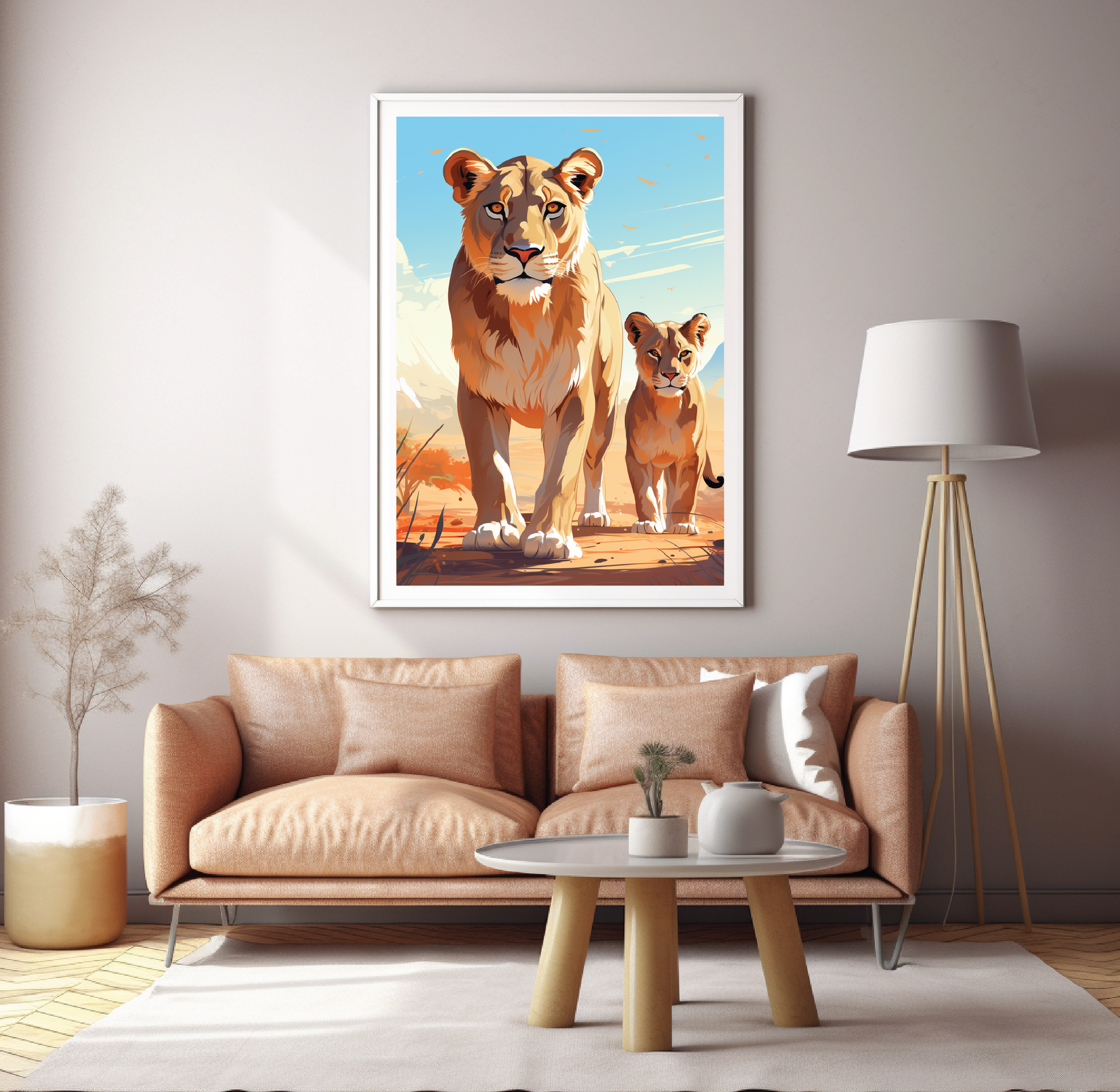 A drawing of a lioness and its cub in the wild, inspired by Taiyō Matsumoto.