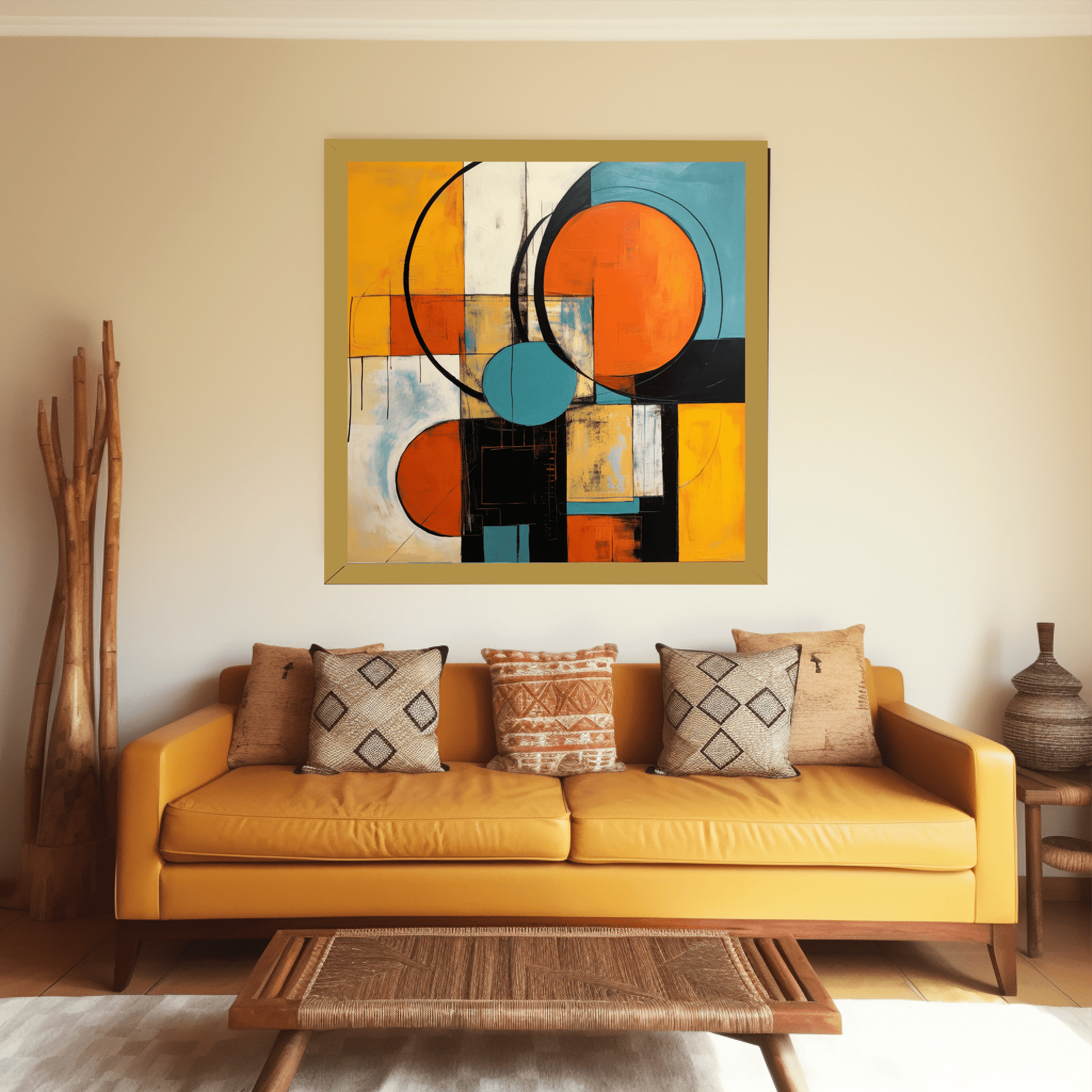 Acrylic Painting of African Minimalist Shapes with a touch of Mid Century Modern Style