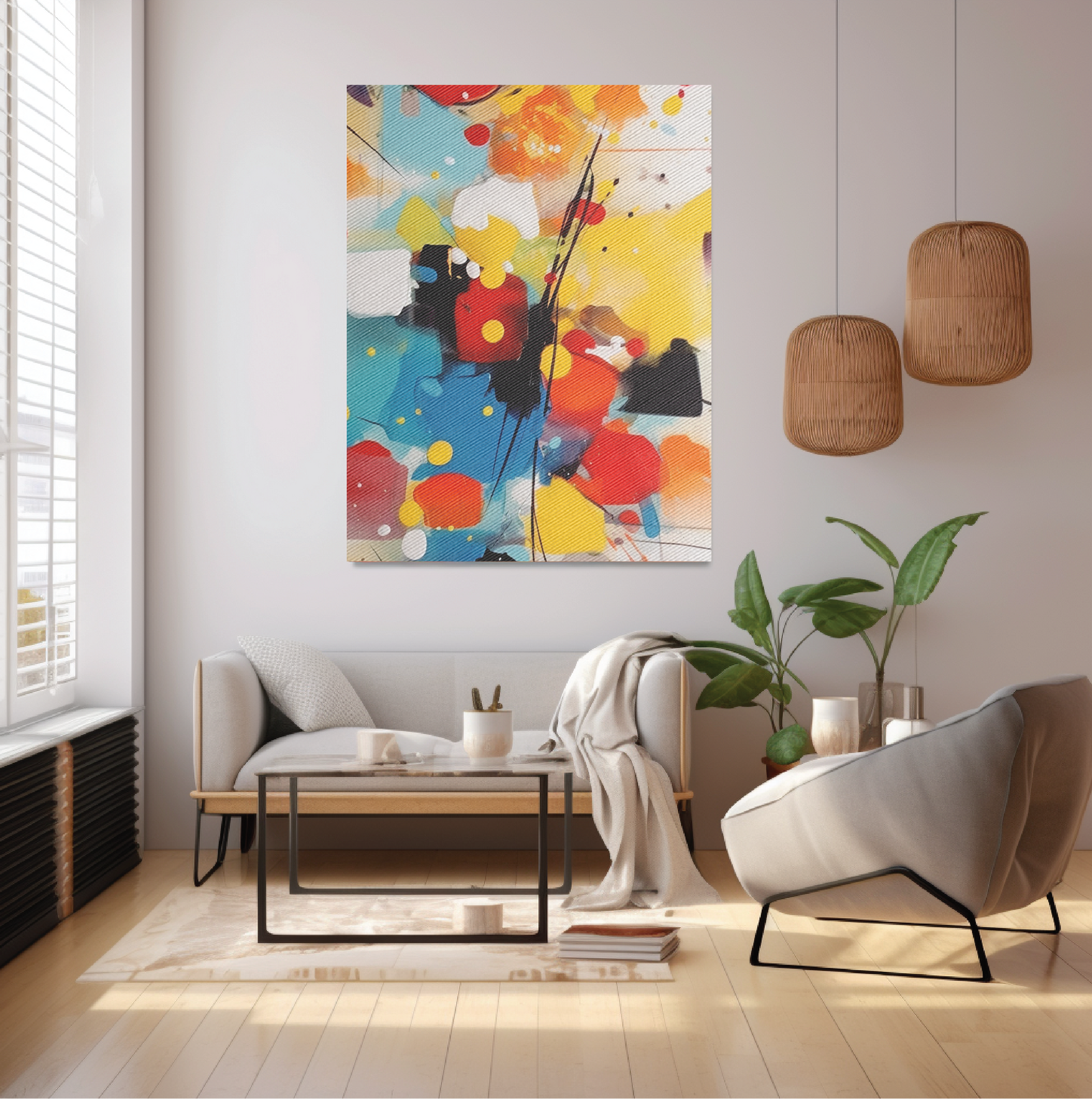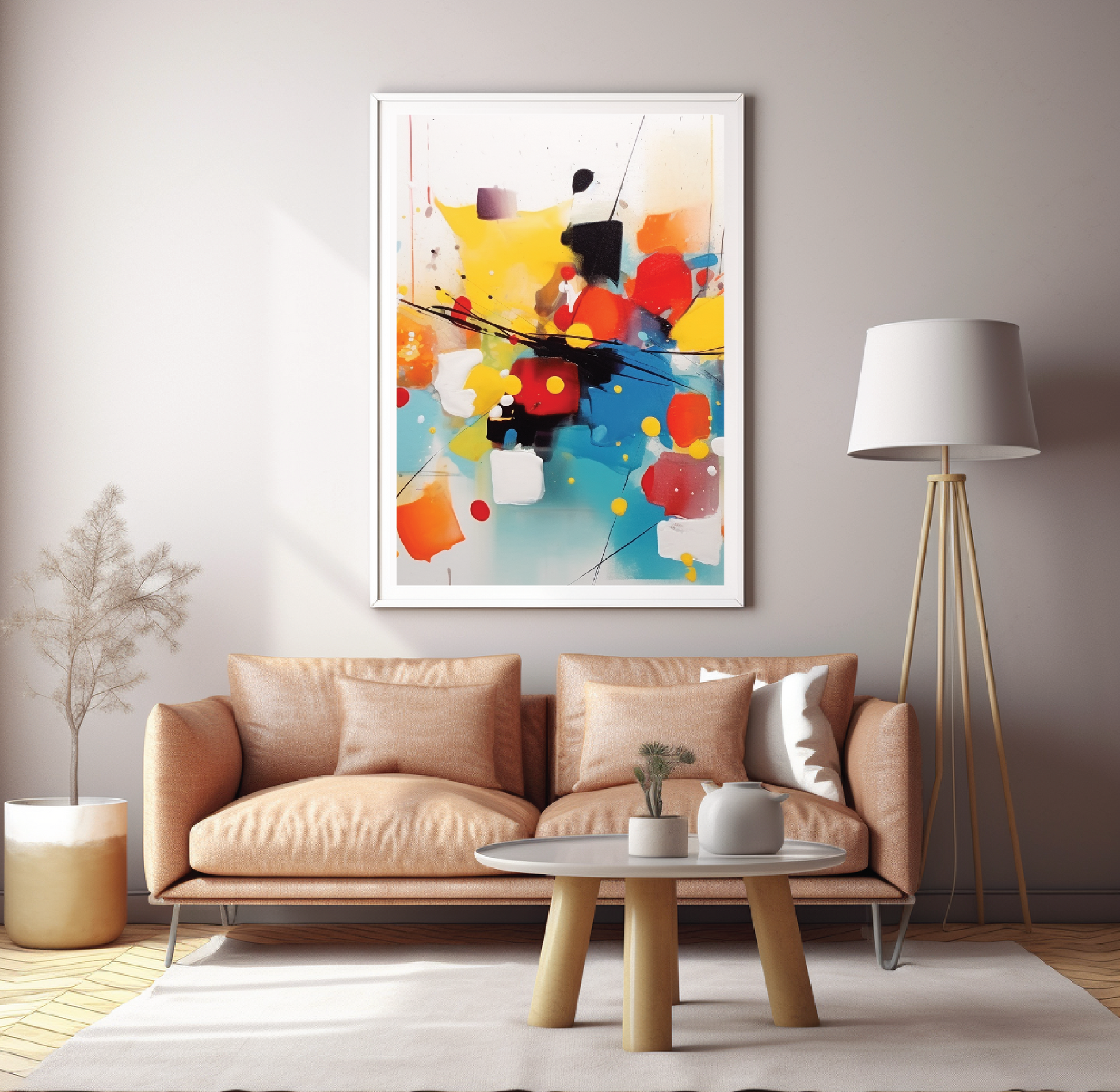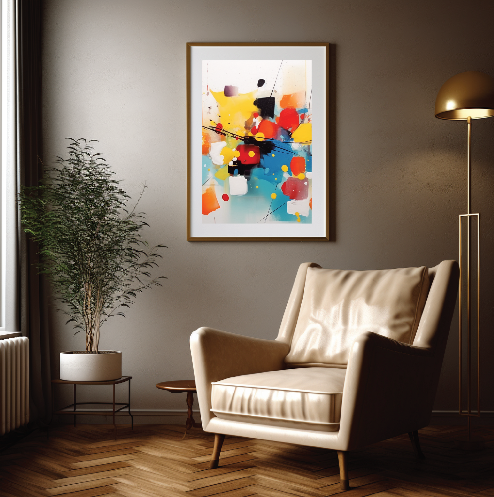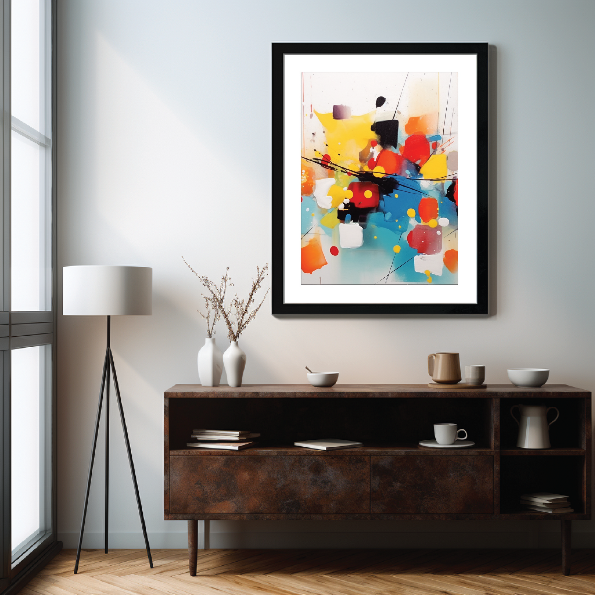 Abstract painted art of colorful paints and shapes, in the style of Dustin Nguyen and David Mould with energetic, dynamic compositions of orange and aquamarine