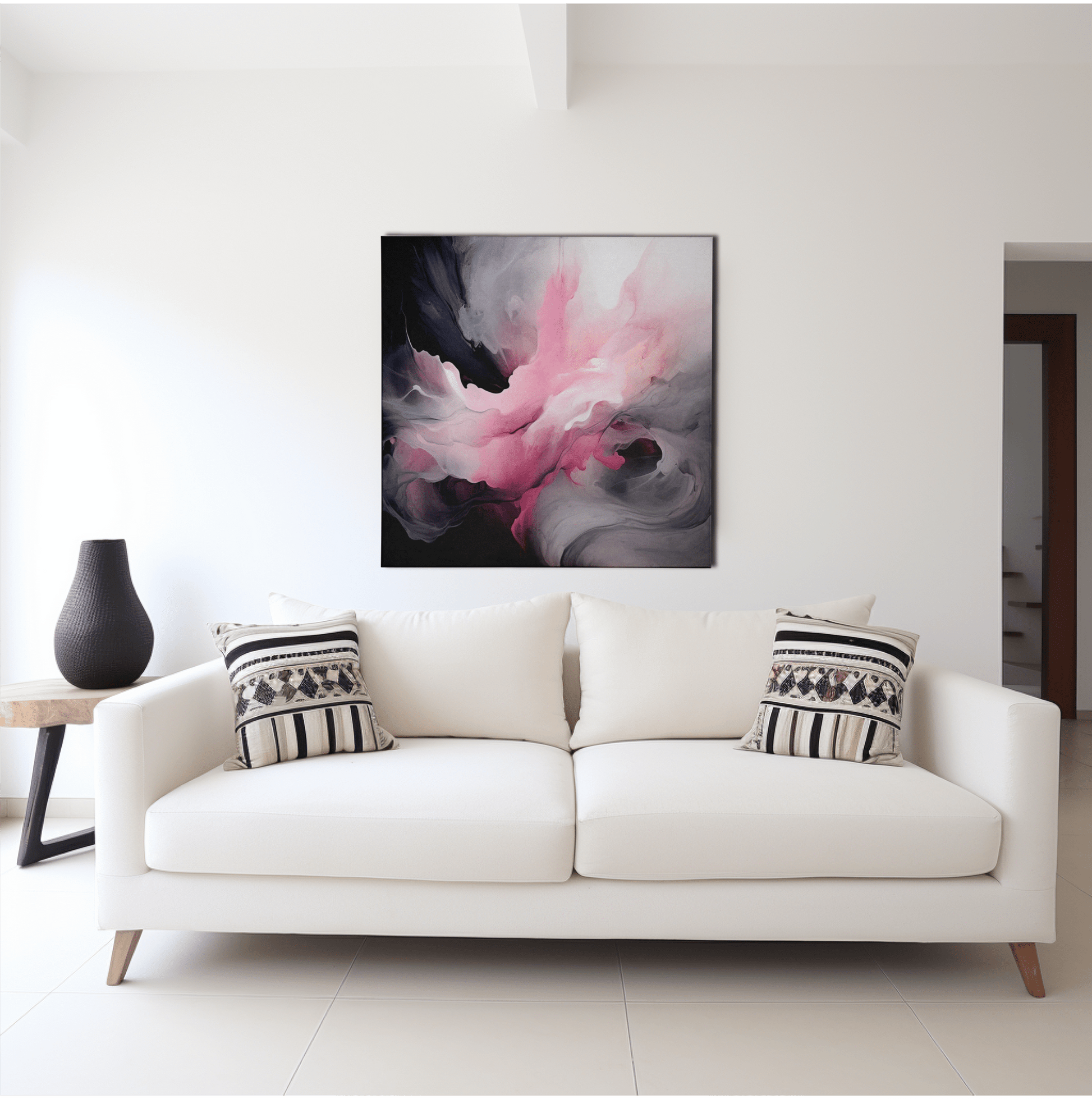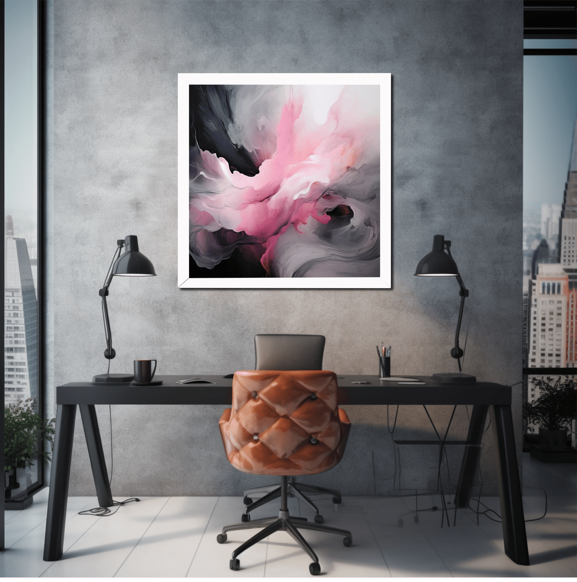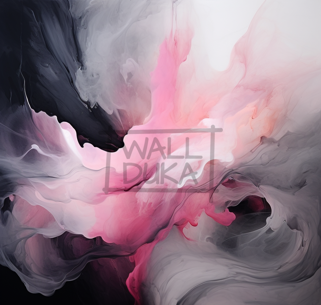 Color splash with dark tones, grey, white and pink, in the style of painter Dieu