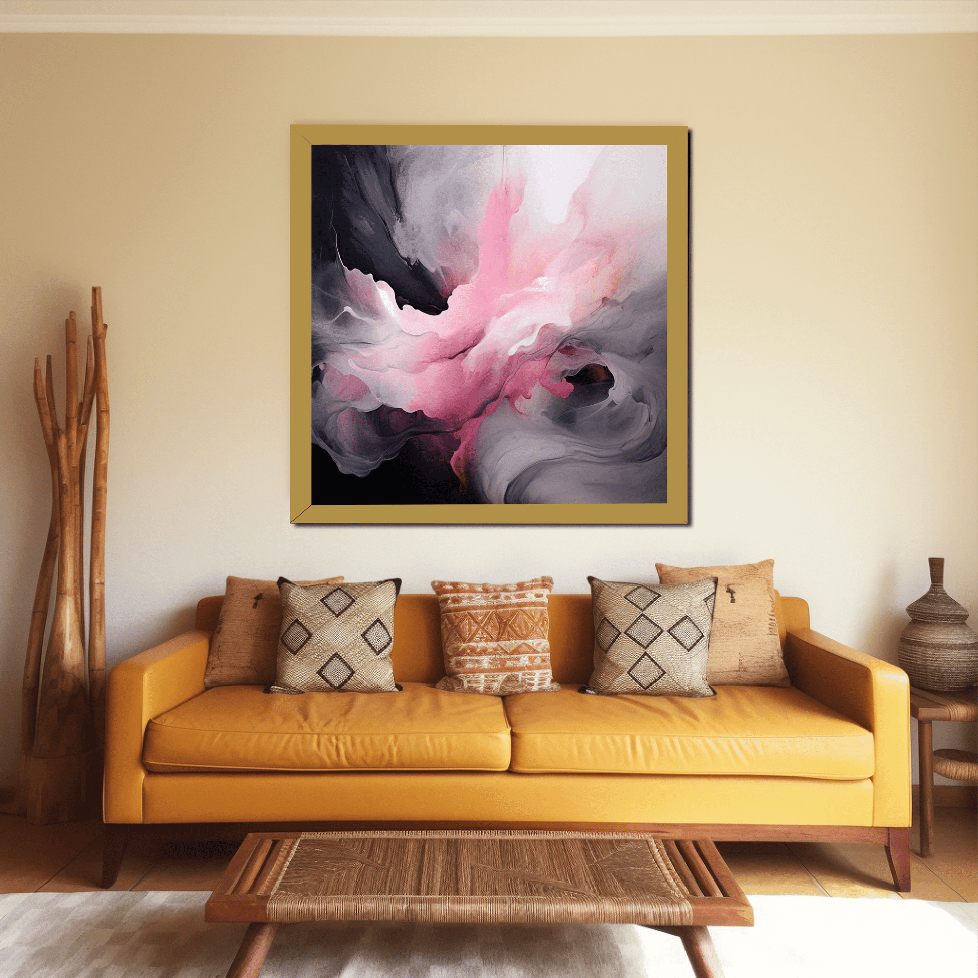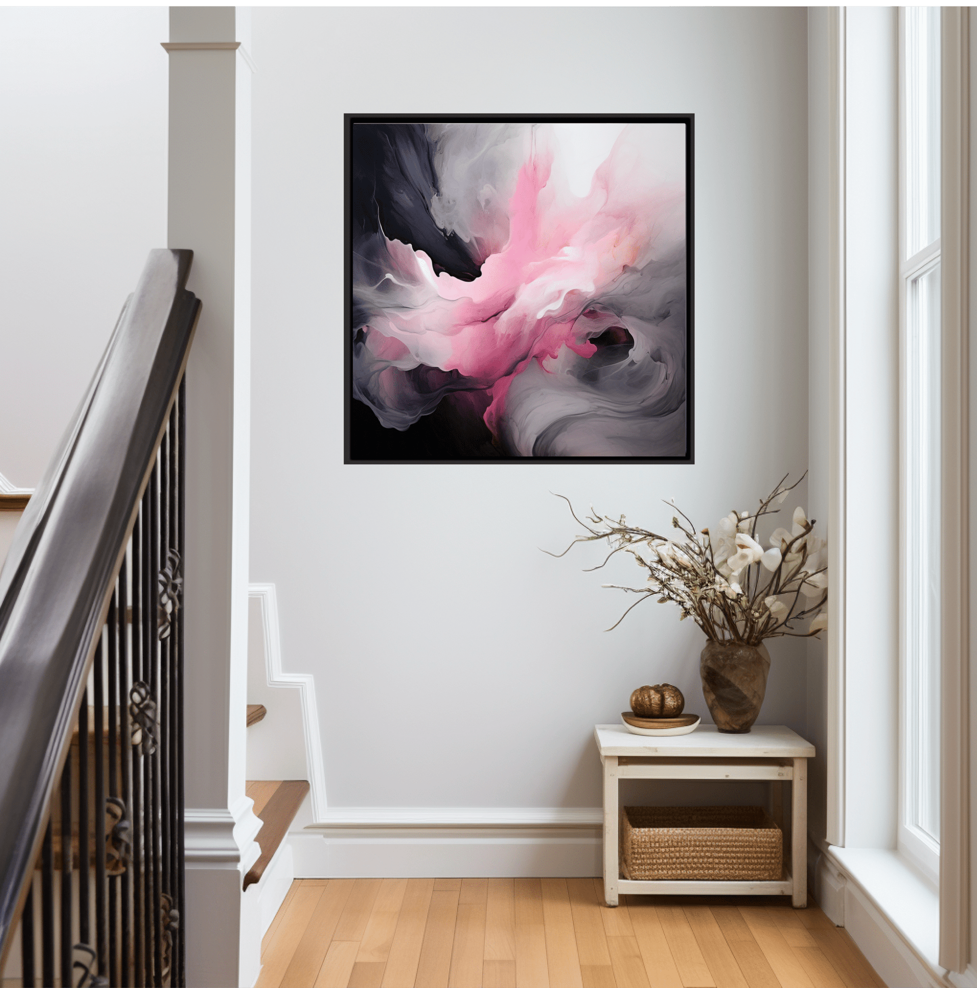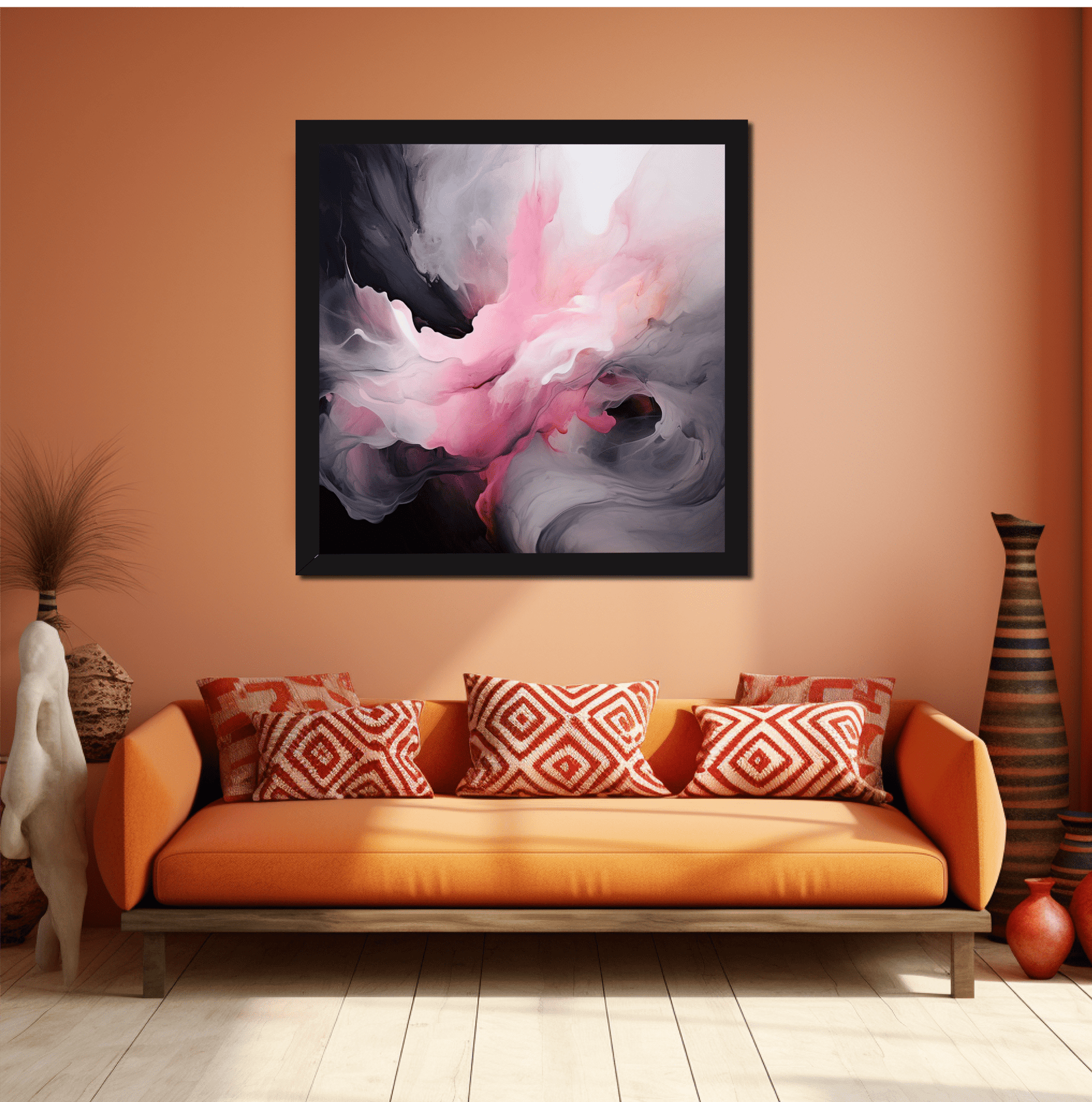 Color splash with dark tones, grey, white and pink, in the style of painter Dieu