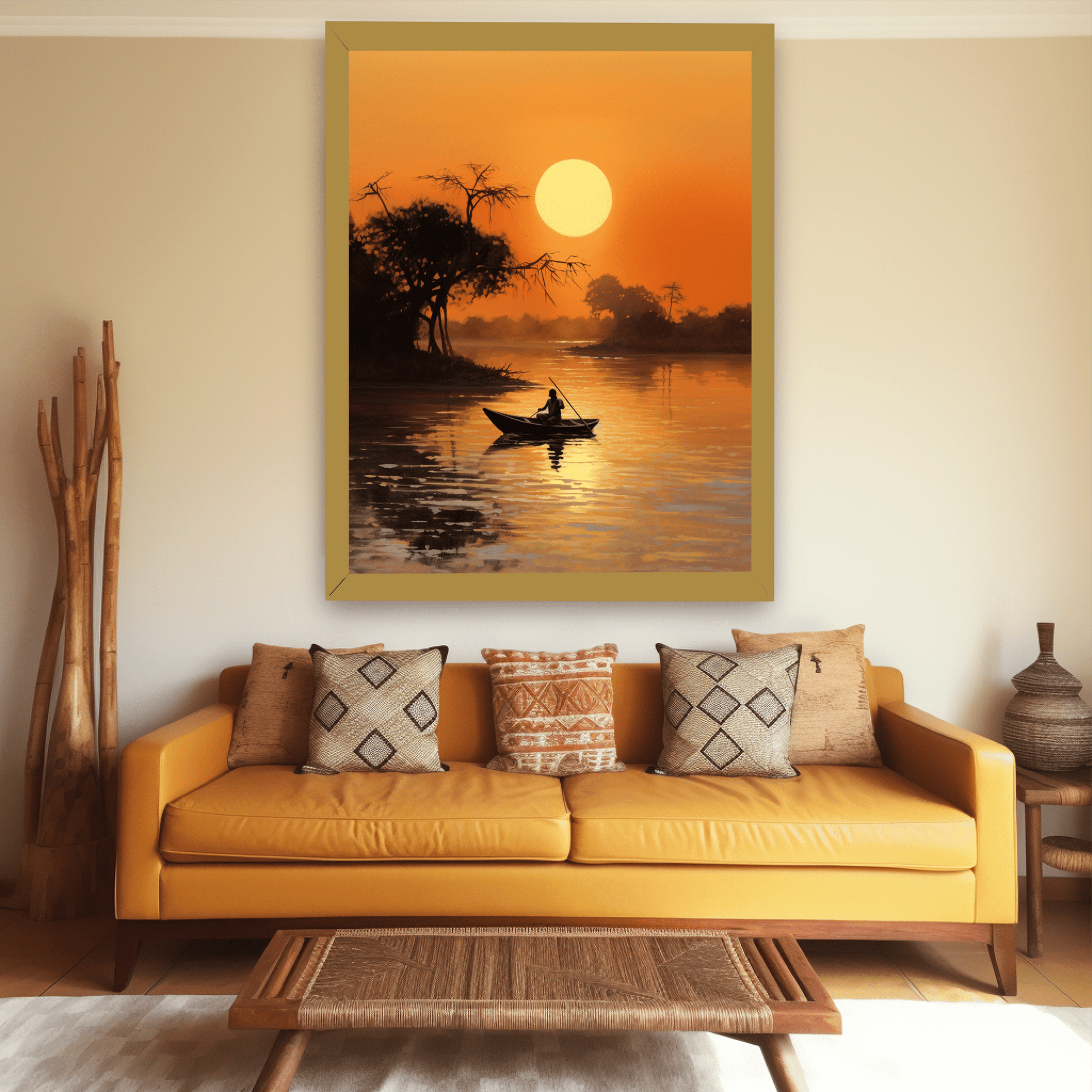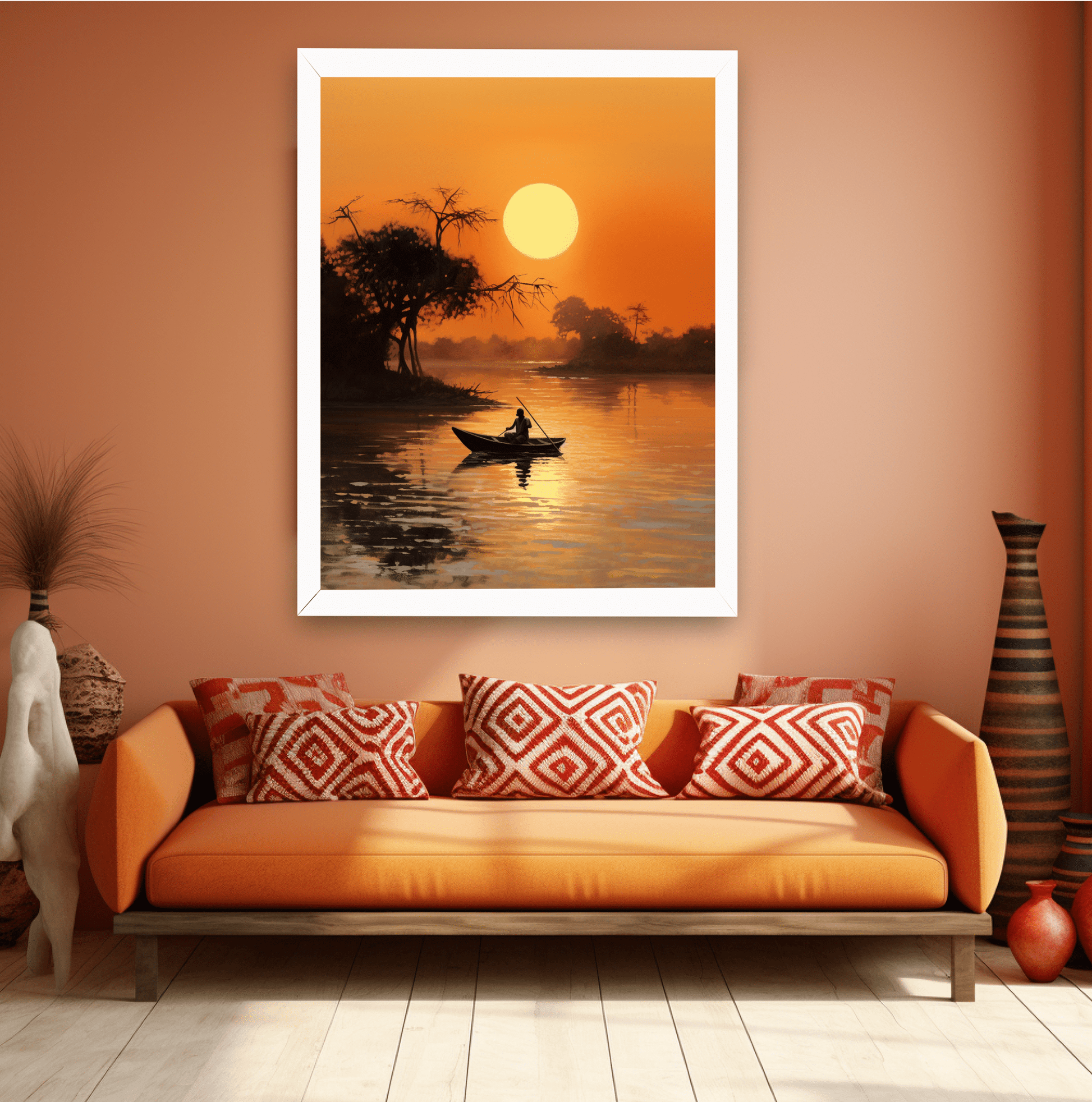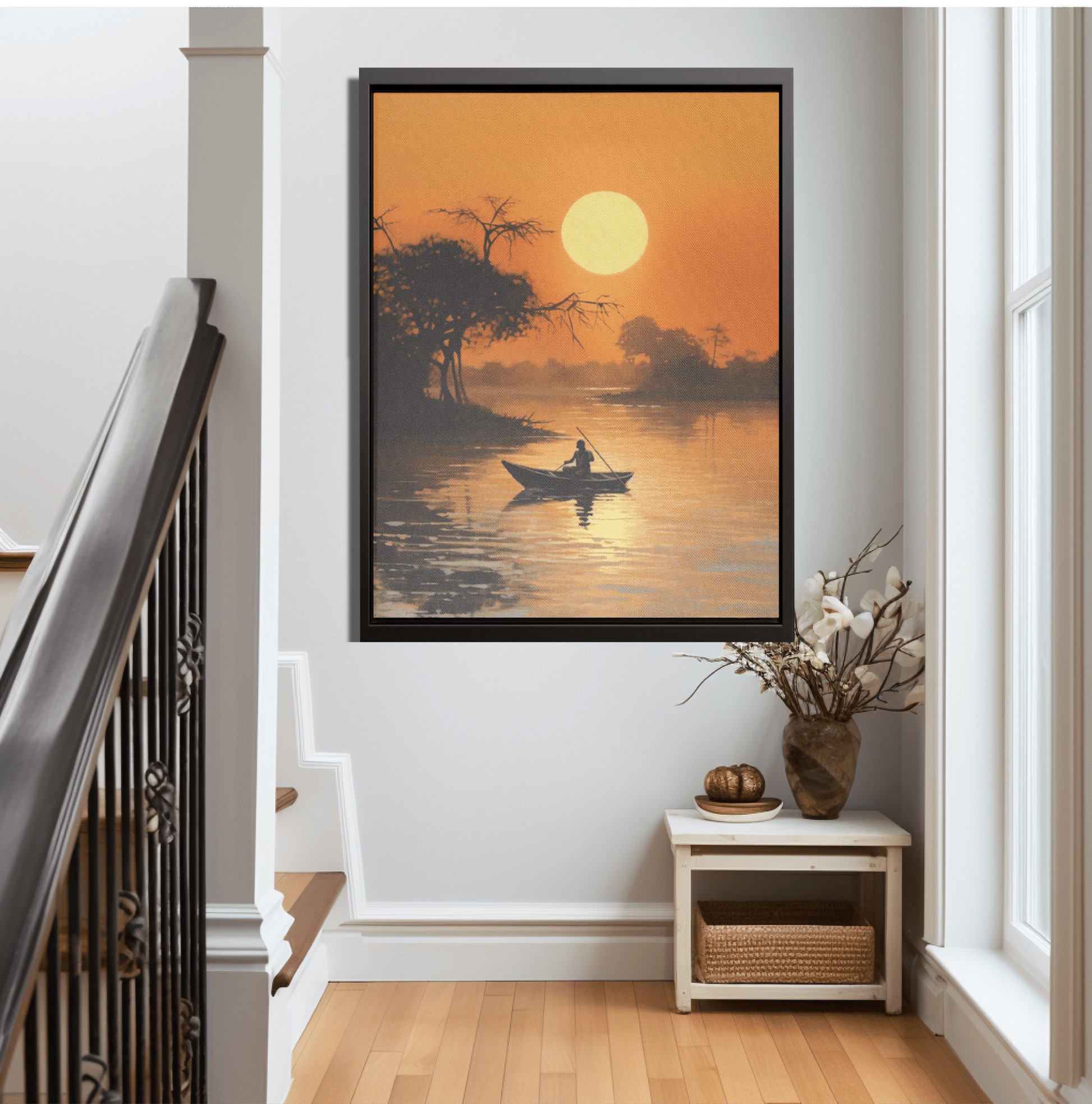 Man enjoying an evening sail on the lake against the sunset.