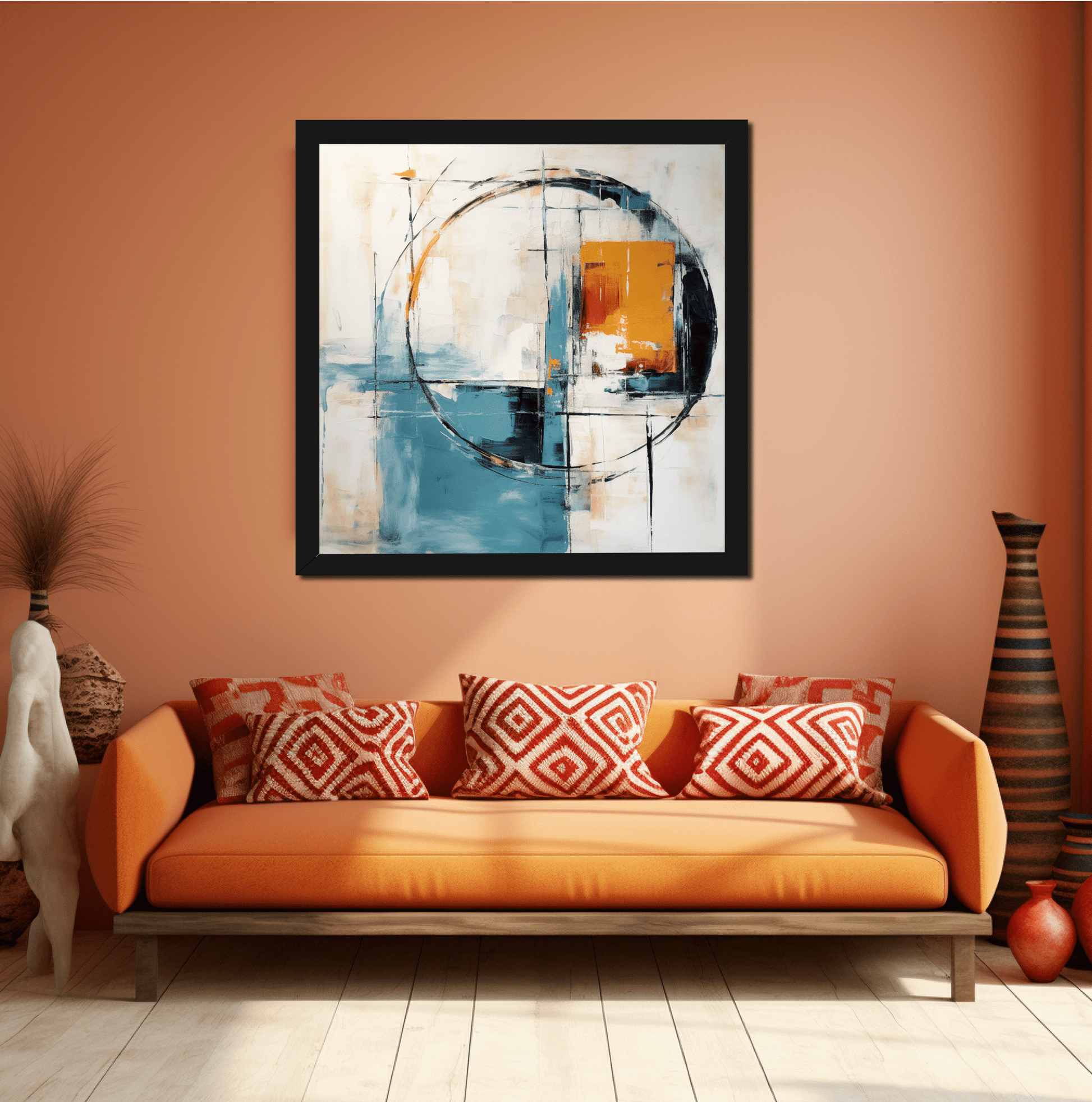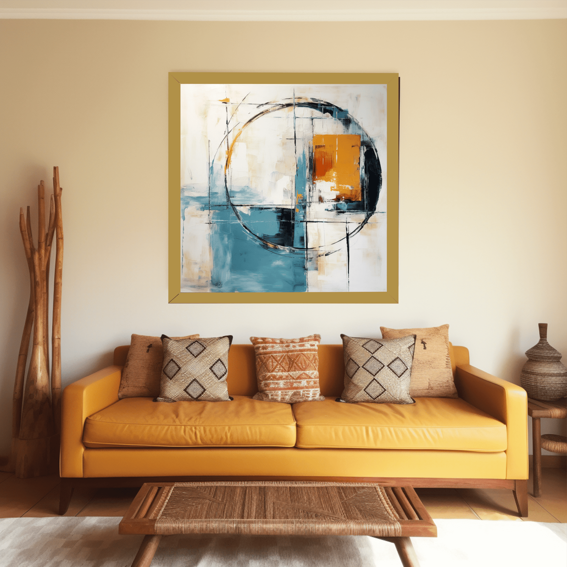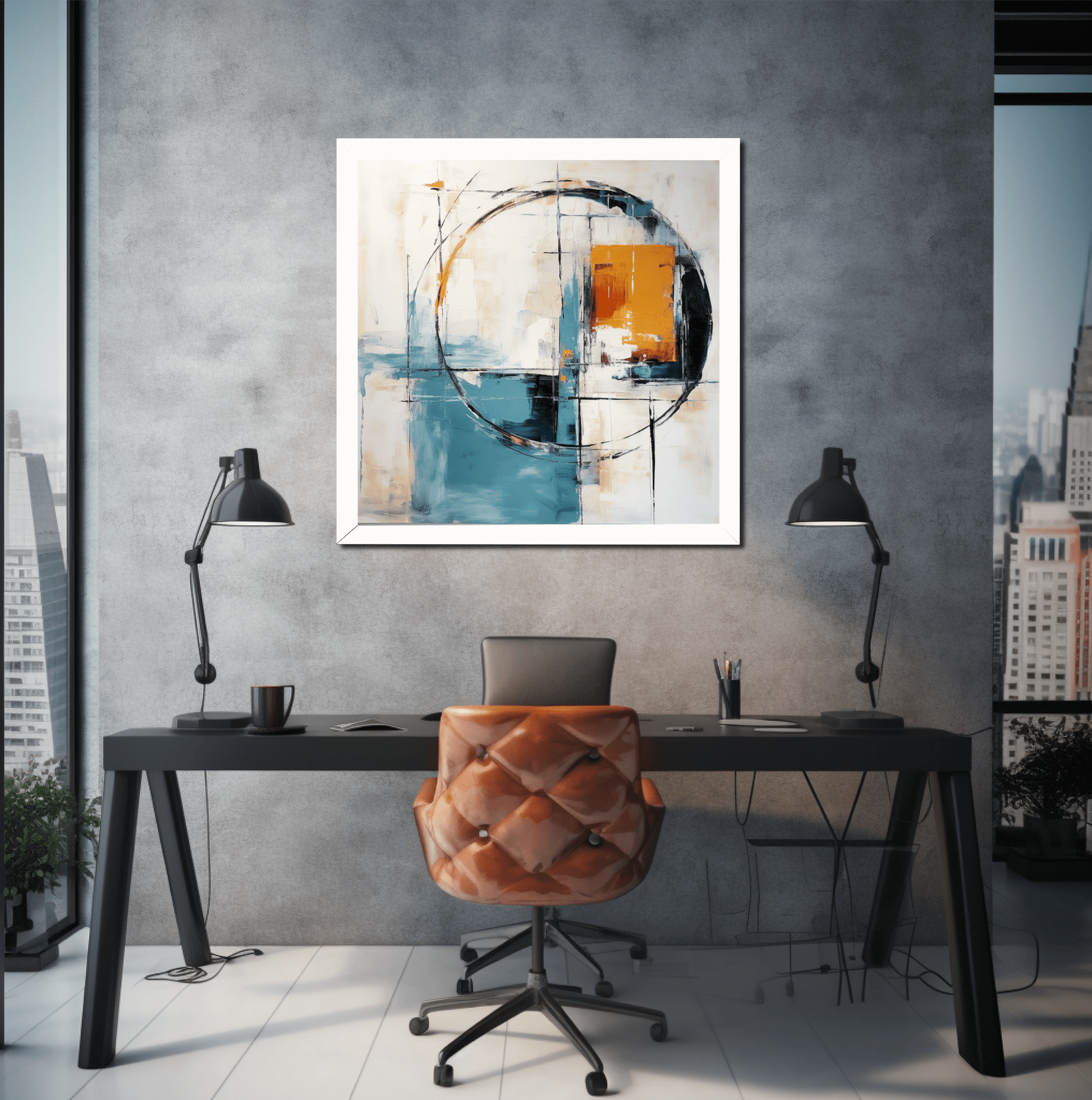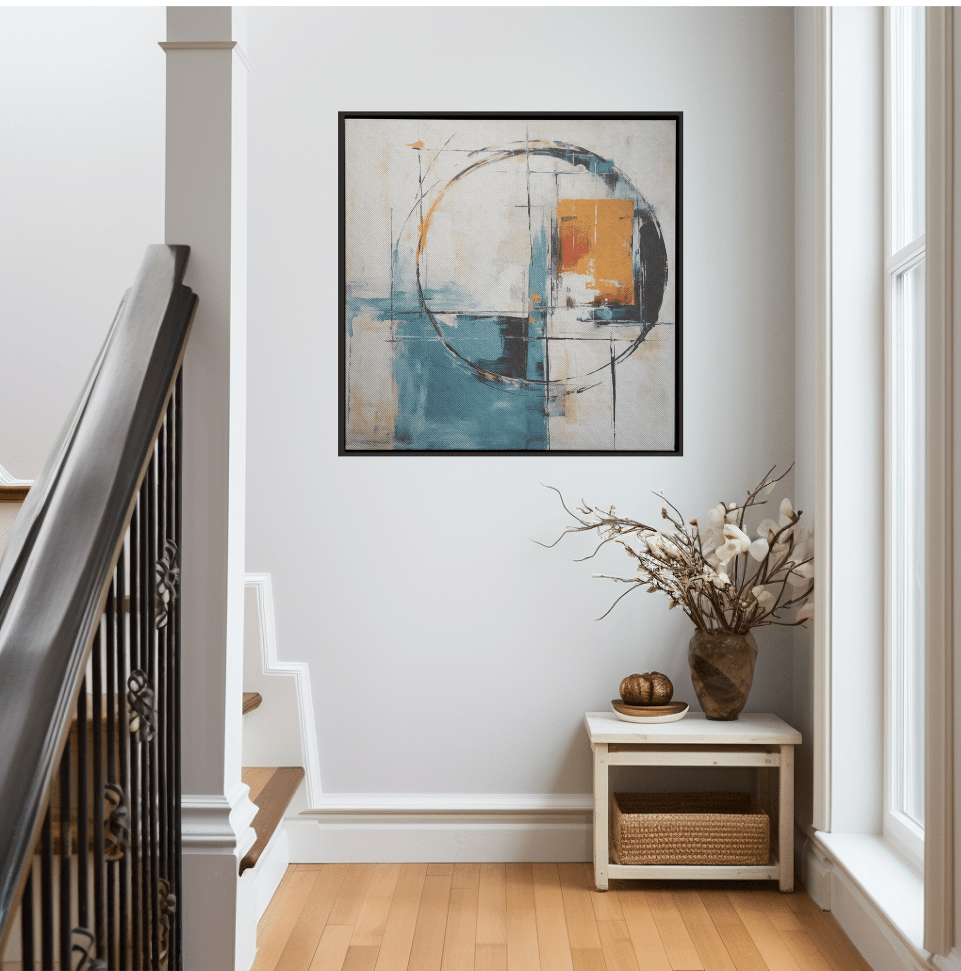 Abstract painting, minimalism, calm and easy with few colors representing a mirror