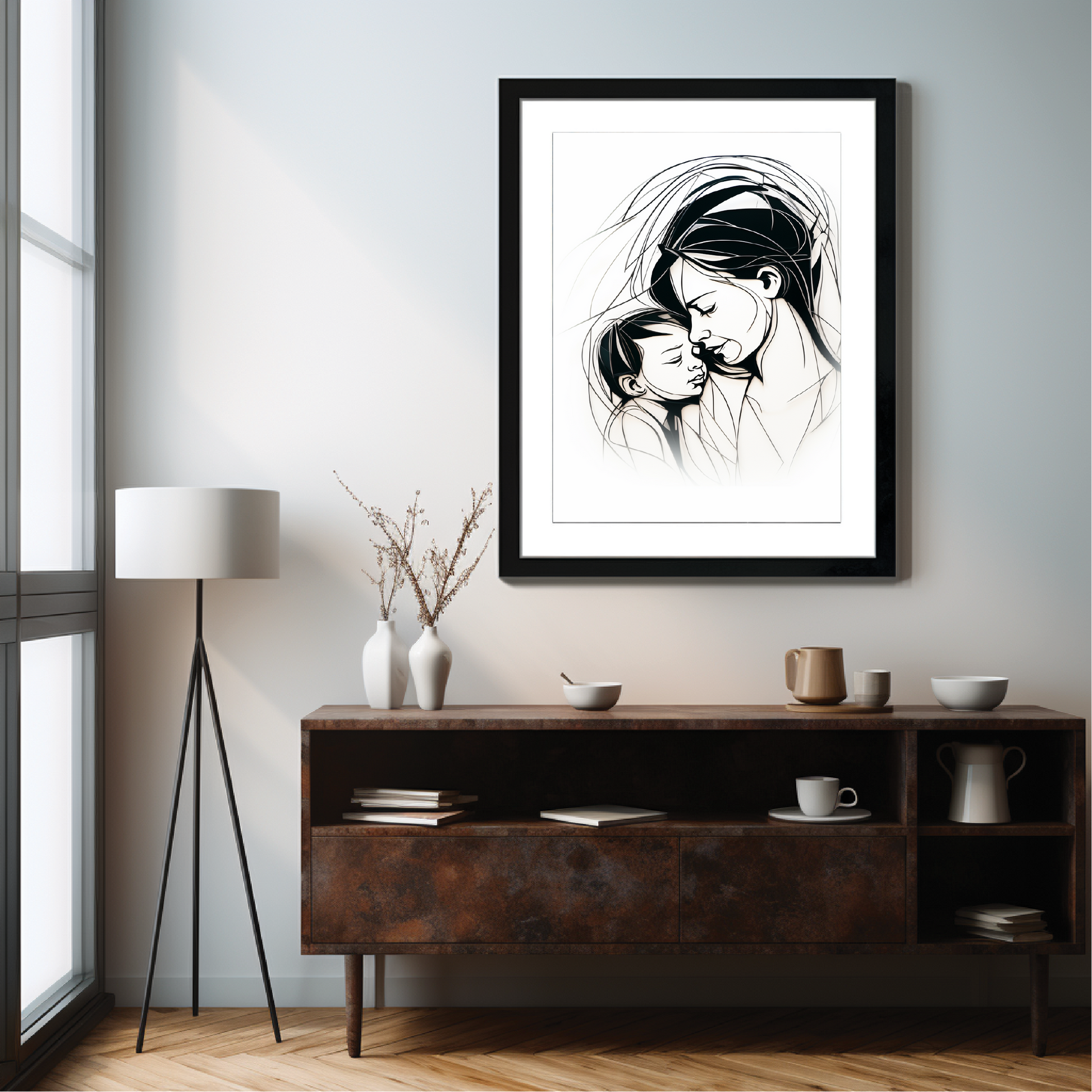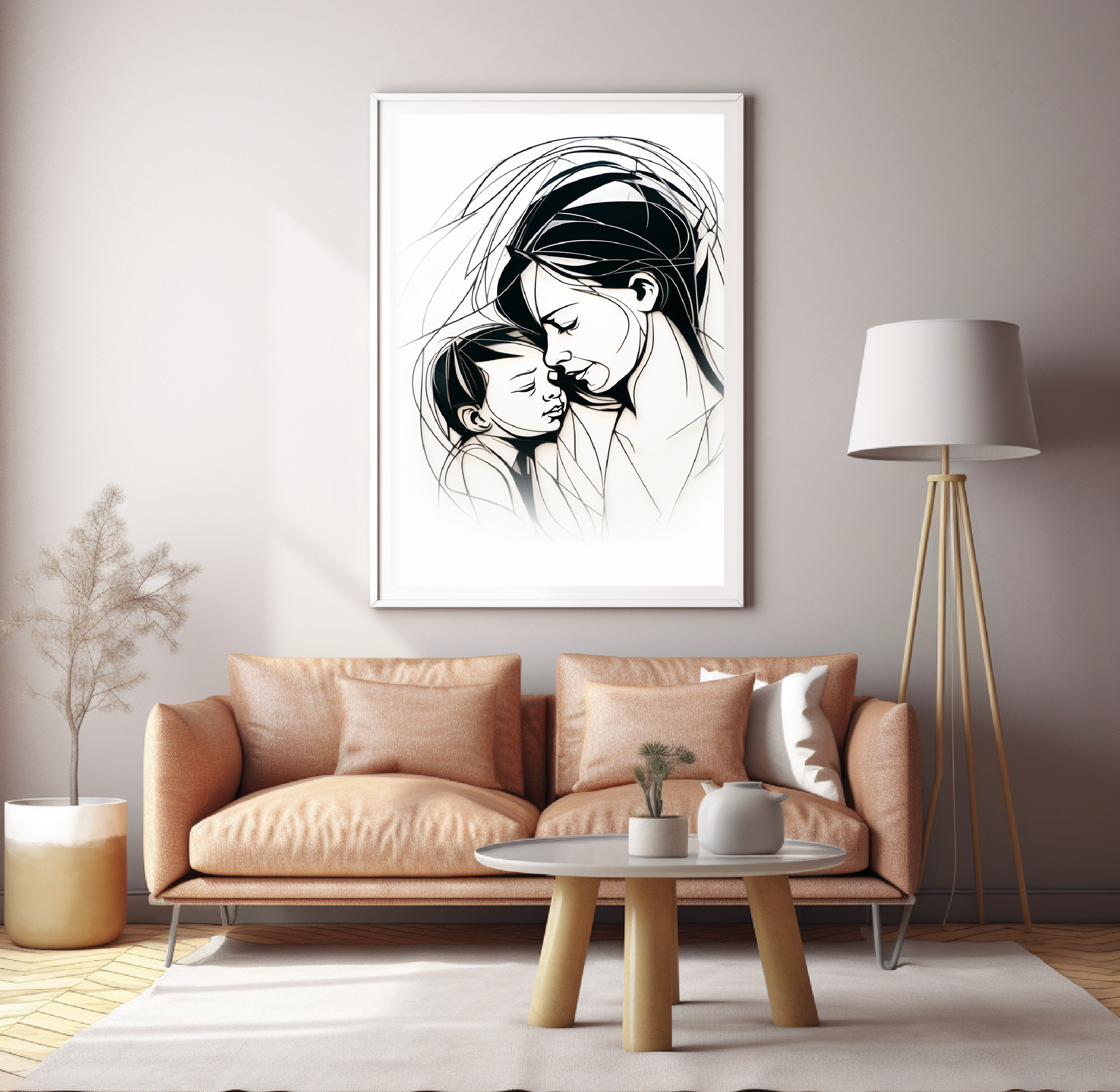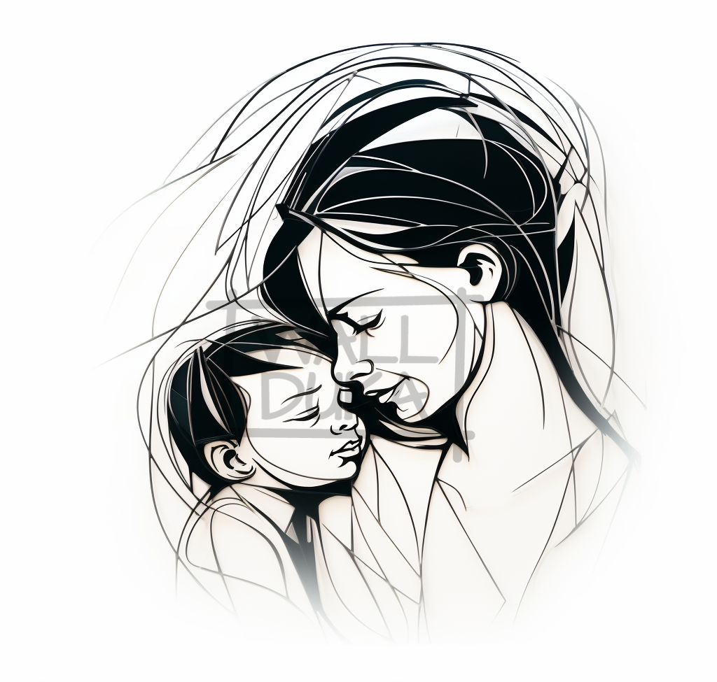 Loving mother caring about her young daughter as a hand drawn vector illustration, in the style of Minjae Lee, religious iconography.