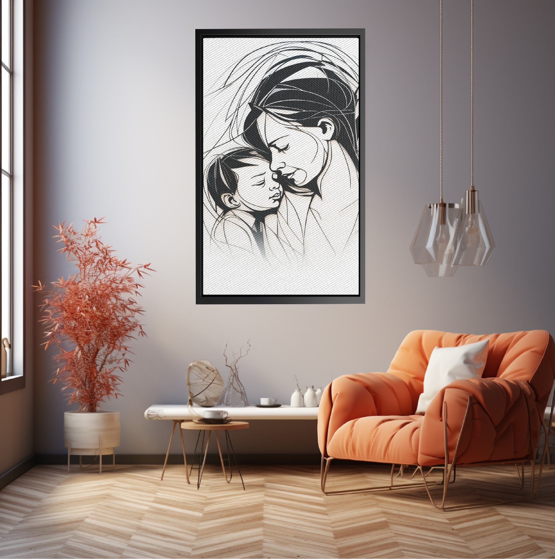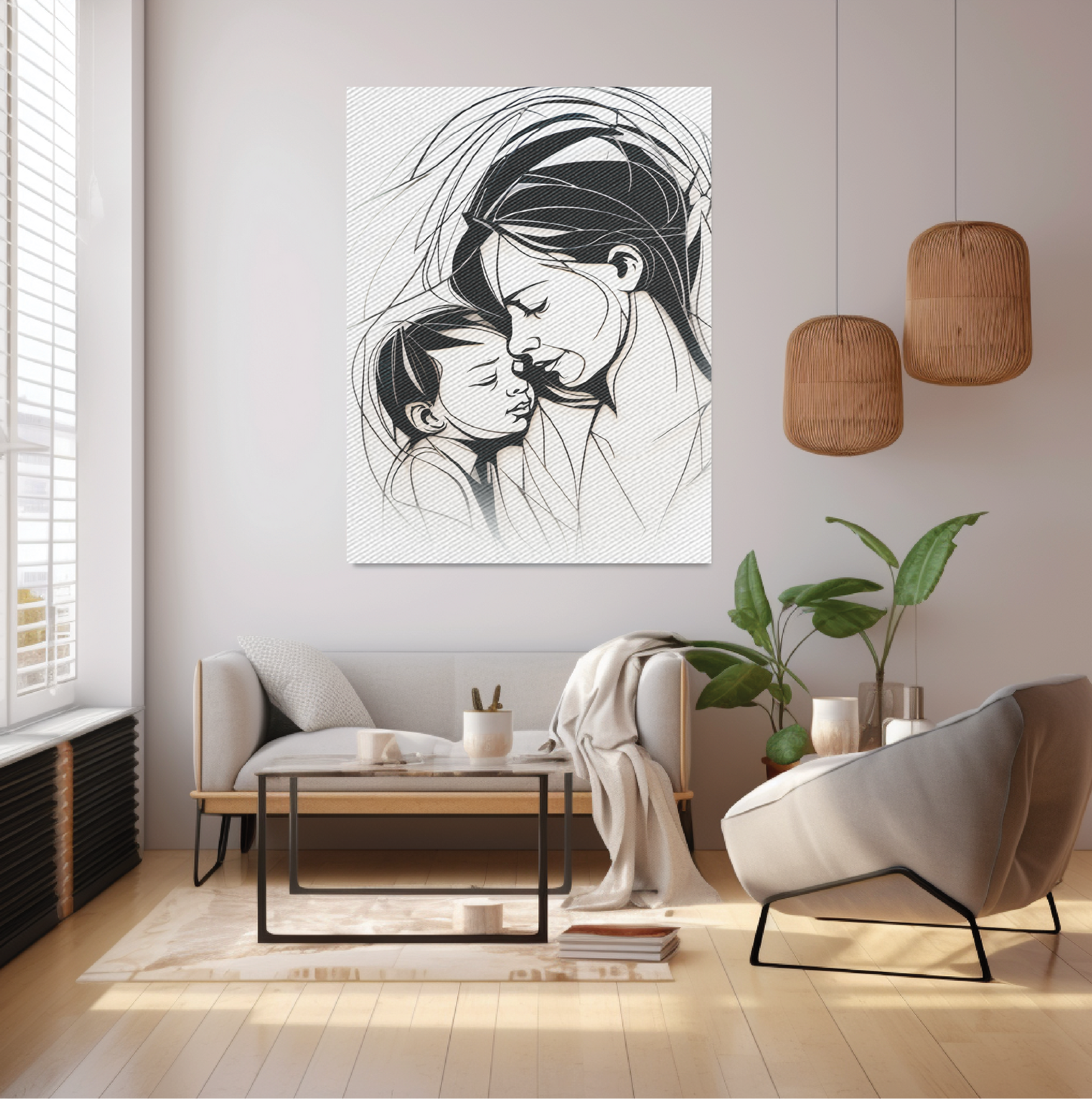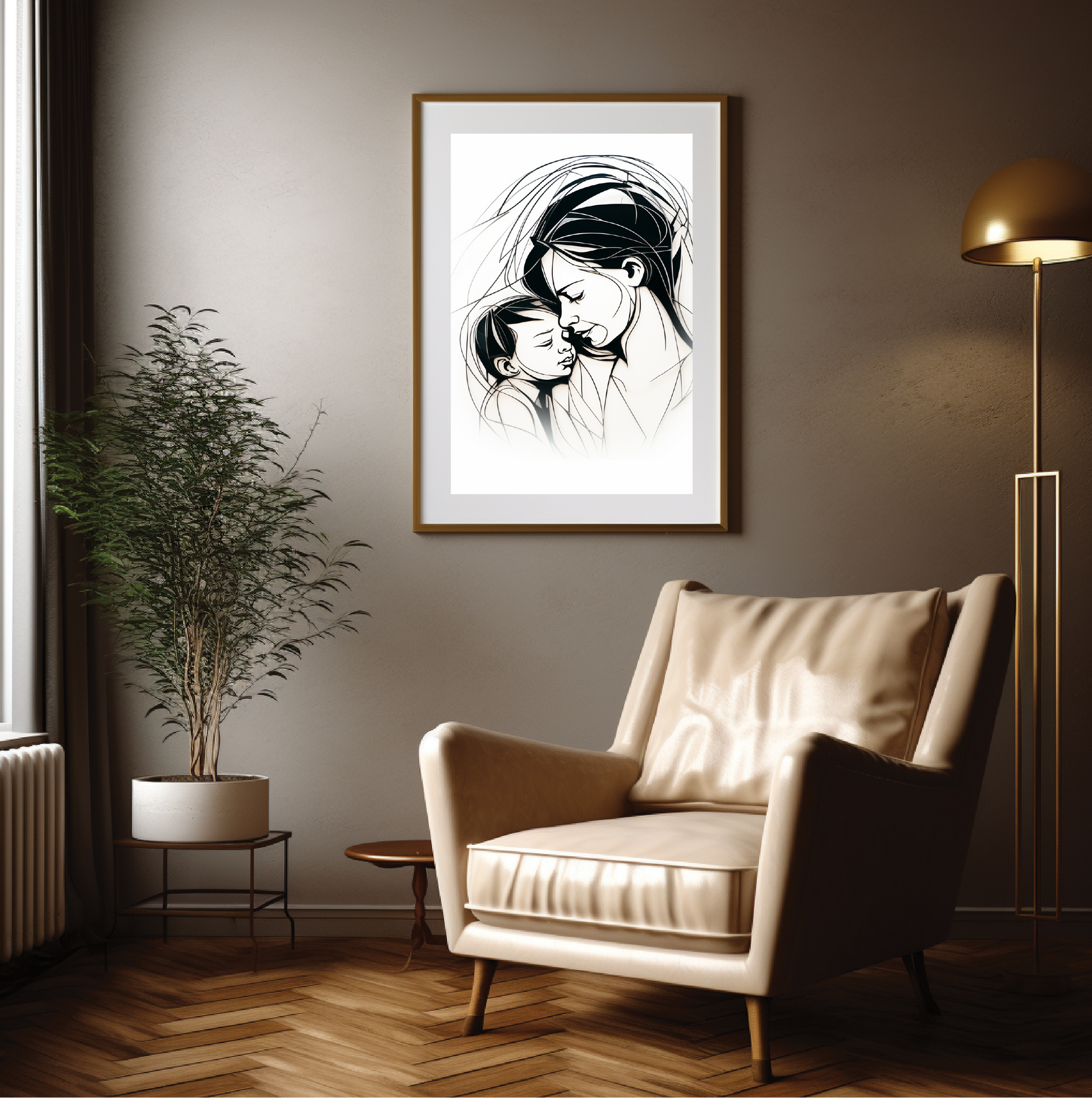 Loving mother caring about her young daughter as a hand drawn vector illustration, in the style of Minjae Lee, religious iconography.
