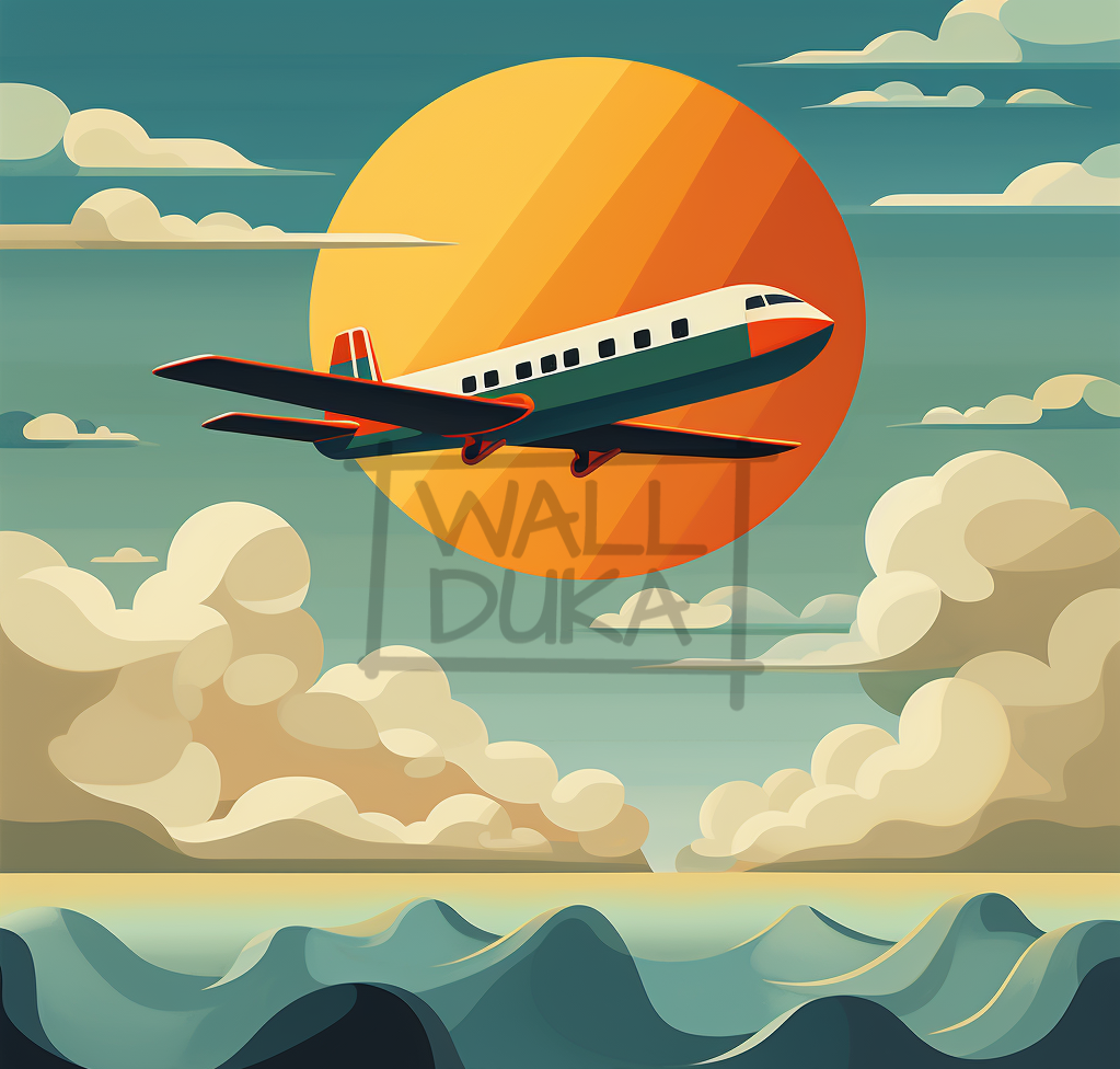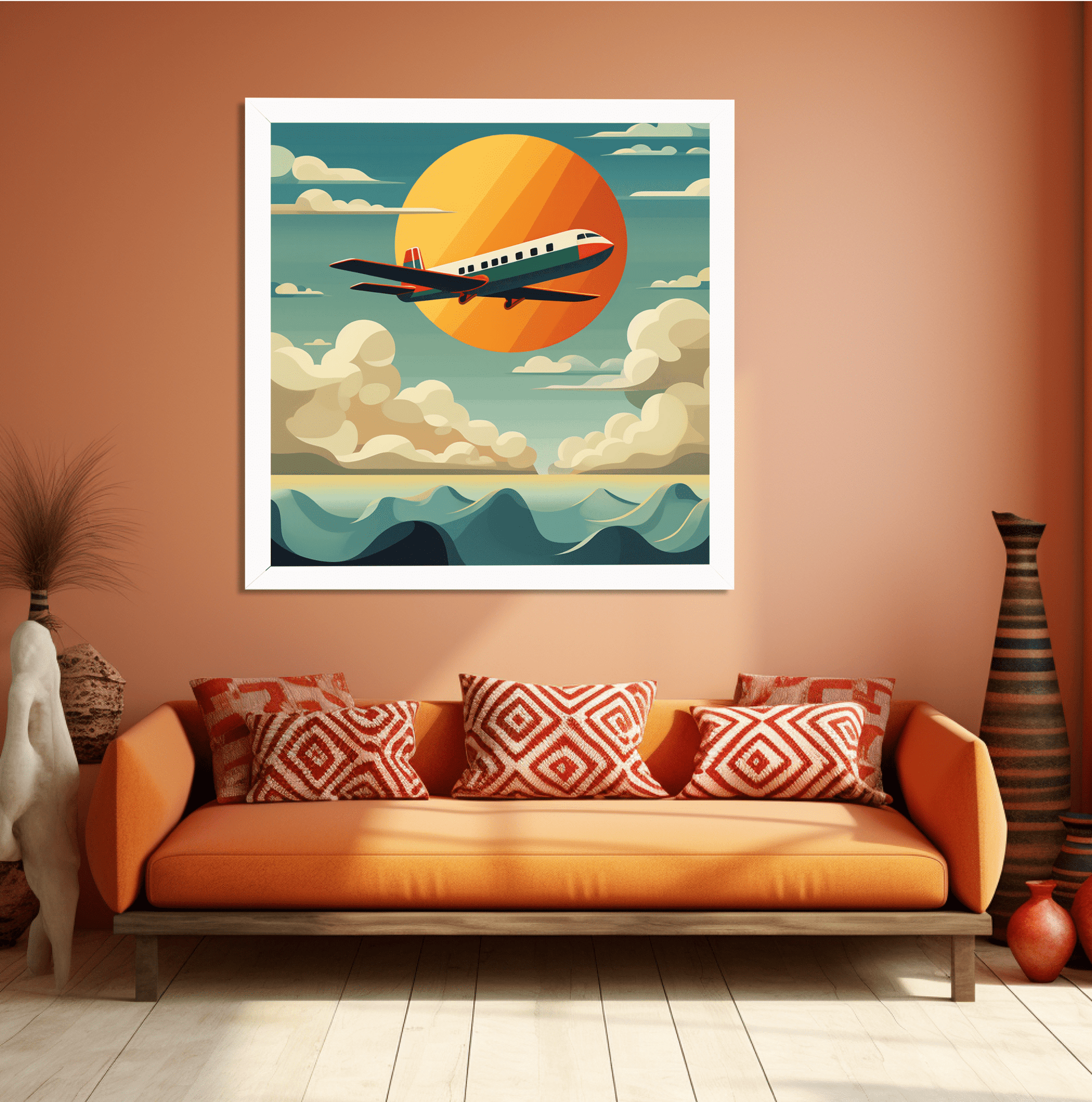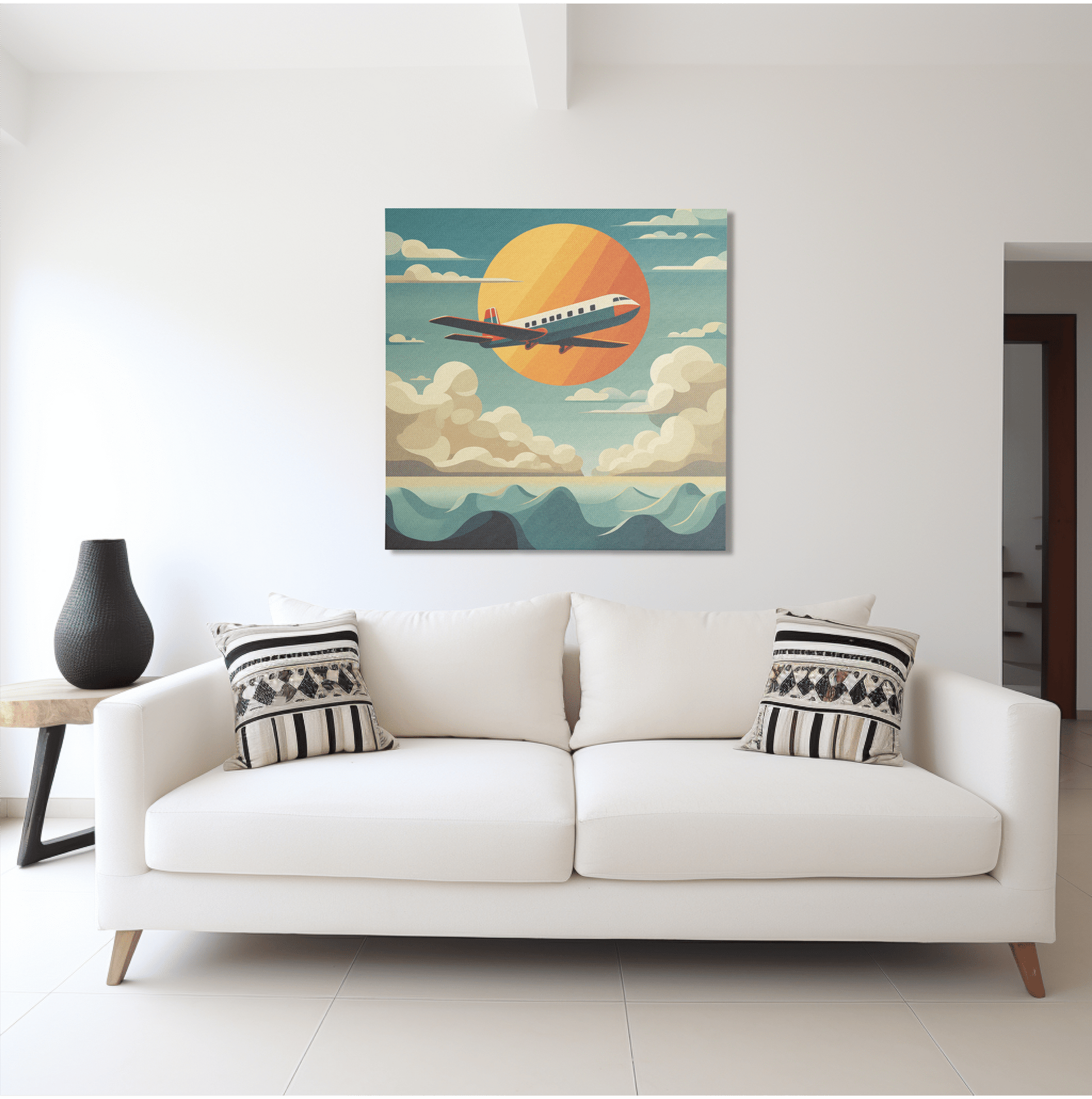 Plane soaring in the sky, with bright colors in the style of Kazimir Malevich.