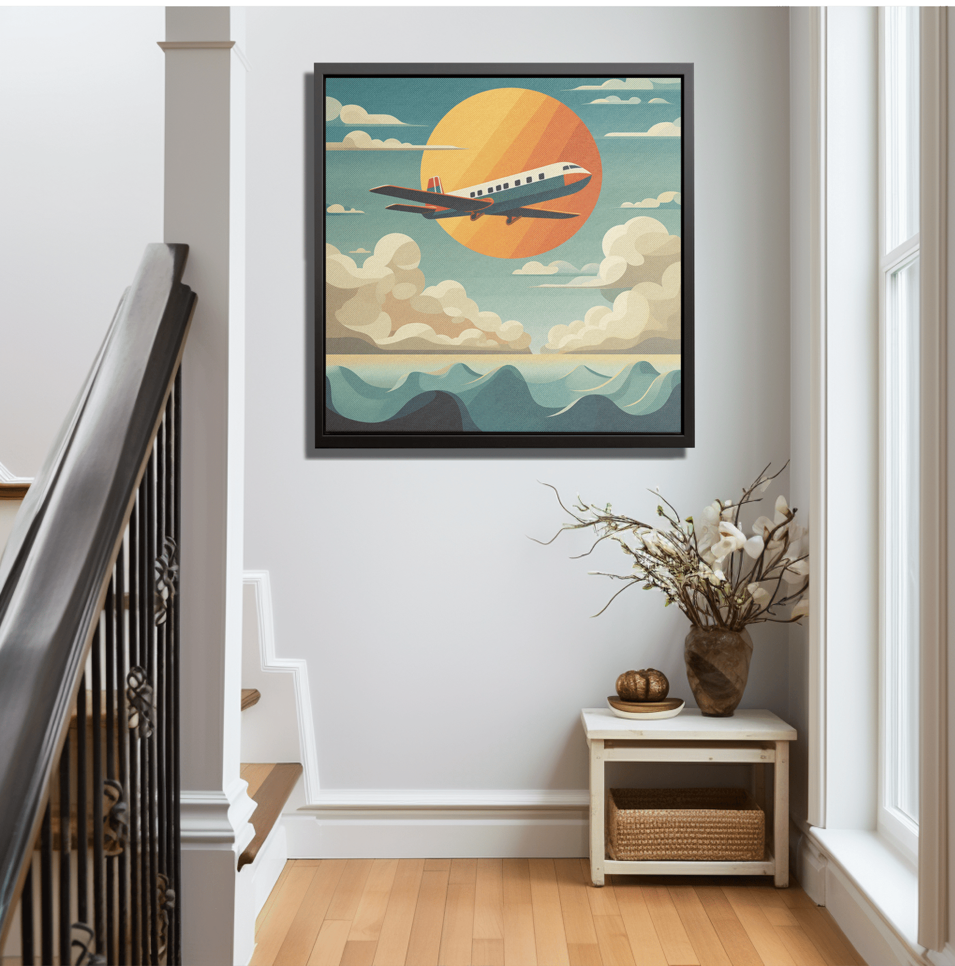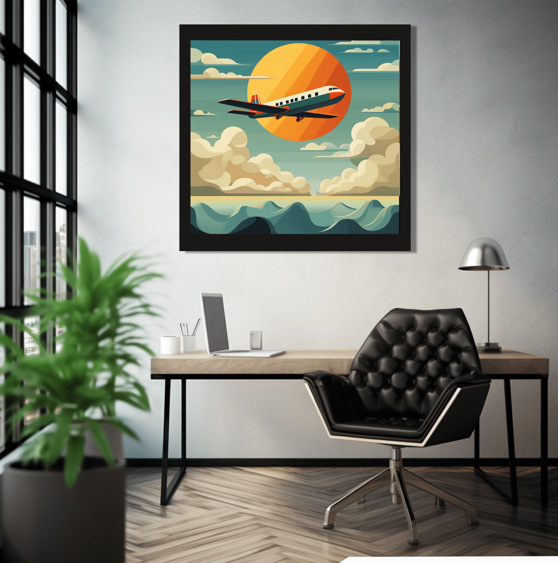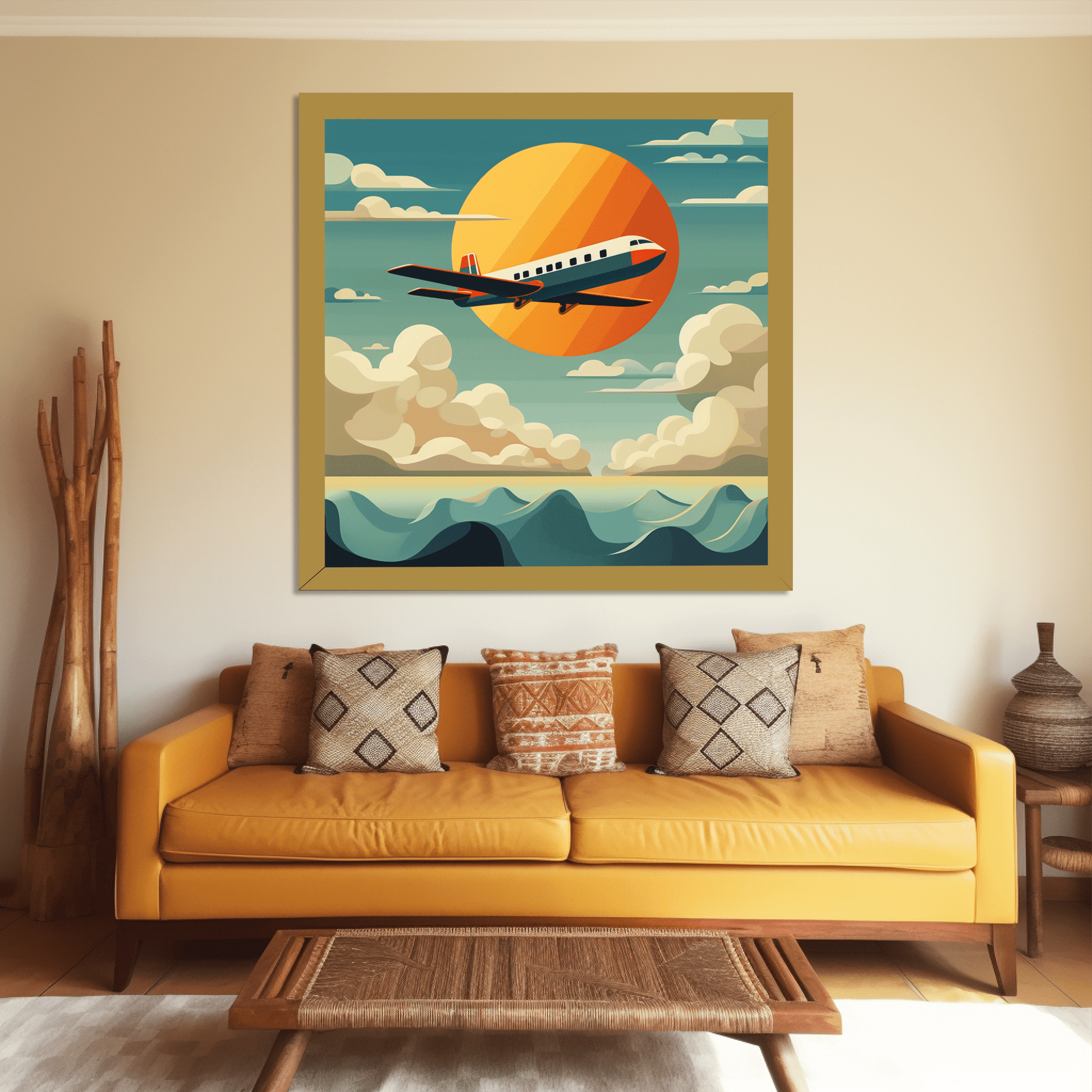 Plane soaring in the sky, with bright colors in the style of Kazimir Malevich.